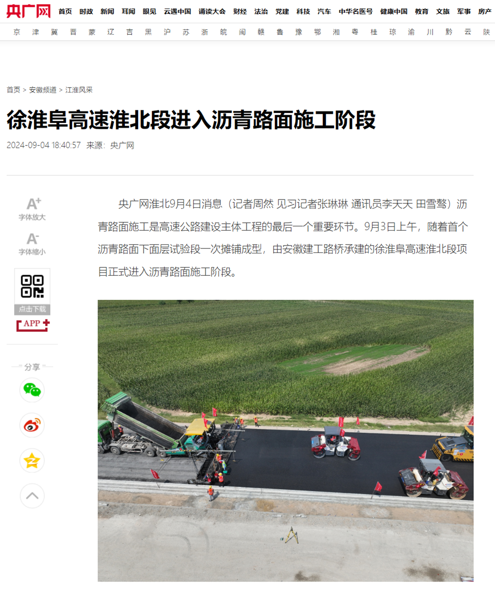 【名媒聚焦】央广网、中安在线、淮北新闻联播等主流媒体聚焦徐淮阜高速淮北段项目施工建设
