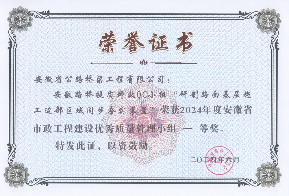 坚持抓创新从施工生产重难点出发,分公司拟定了27项科研课题,下发了《2024年度科技创新成果指标》,并针对预制箱梁施工质量及路面基层压实质量控制等课题,成立了6个QC小组,获评“安徽省市政工程协会”及“安徽省建设工程质量与安全协会”QC成果一等奖3项,二、三等奖5项。鼓励基层项目开展提升功效类小发明、小创造、小革新、小设计、小建议,今年以来,分公司顺利获评实用新型发明专利20余项,征集“合理化建议”30余条。