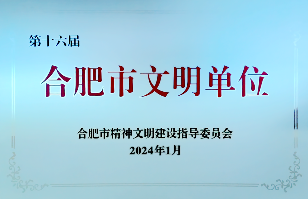 近日,合肥市精神文明建设指导委员会公布第十六届合肥市文明单位,公司获此殊荣。