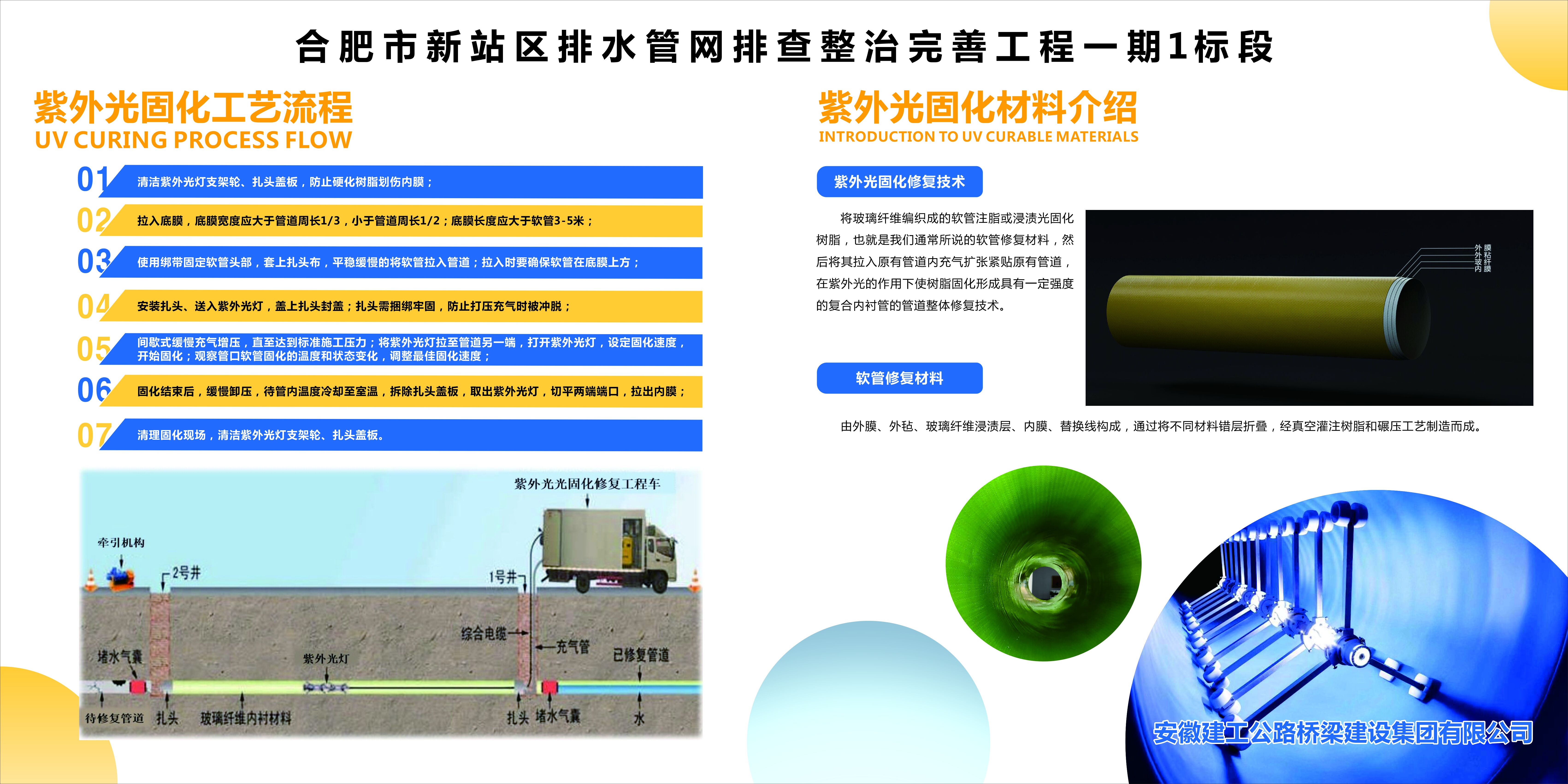 近日,公司承建的新站区排水管网排查整治完善工程一期1标段顺利完成安徽省内最大管径管道紫外光固化修复。