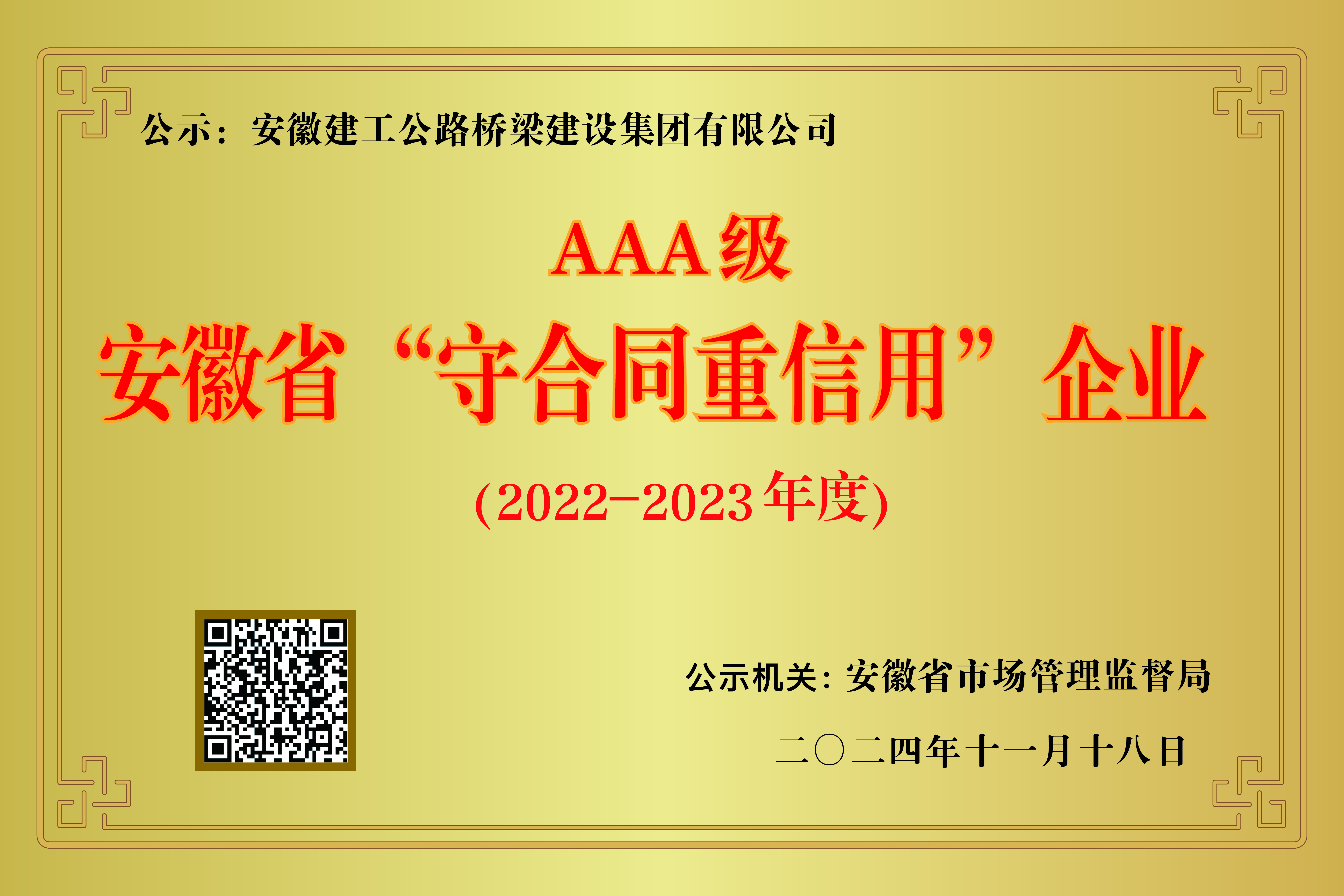 近日,安徽省市场监督管理局发布了2022-2023年度“安徽省守合同重信用”AAA级企业名单,公司荣登榜单。