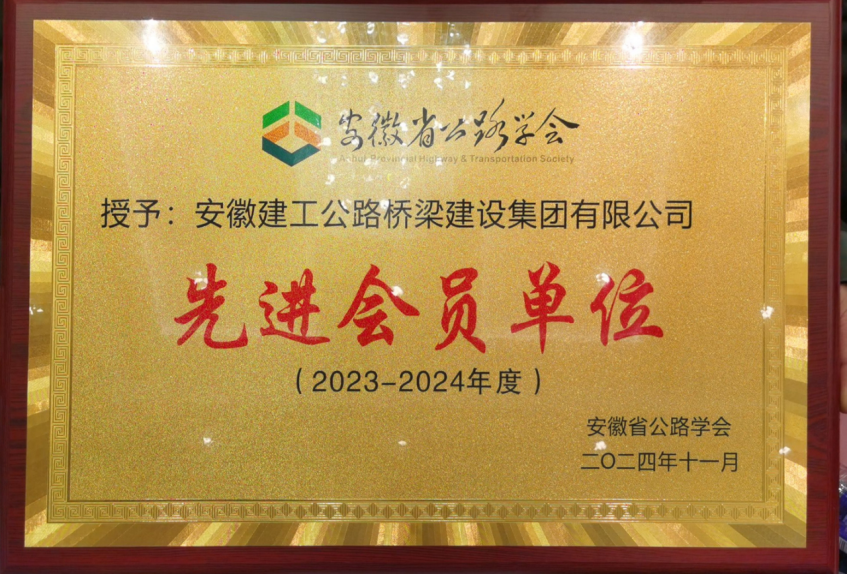 近日,安徽省公路学会八届三次理事会在宣城召开,会上表彰了第十二届安徽交通科技进步奖获奖项目及2024年度先进单位。公司申报的6项科研项目成果分别荣获一、二、三等奖,公司荣获2024年度先进会员单位。