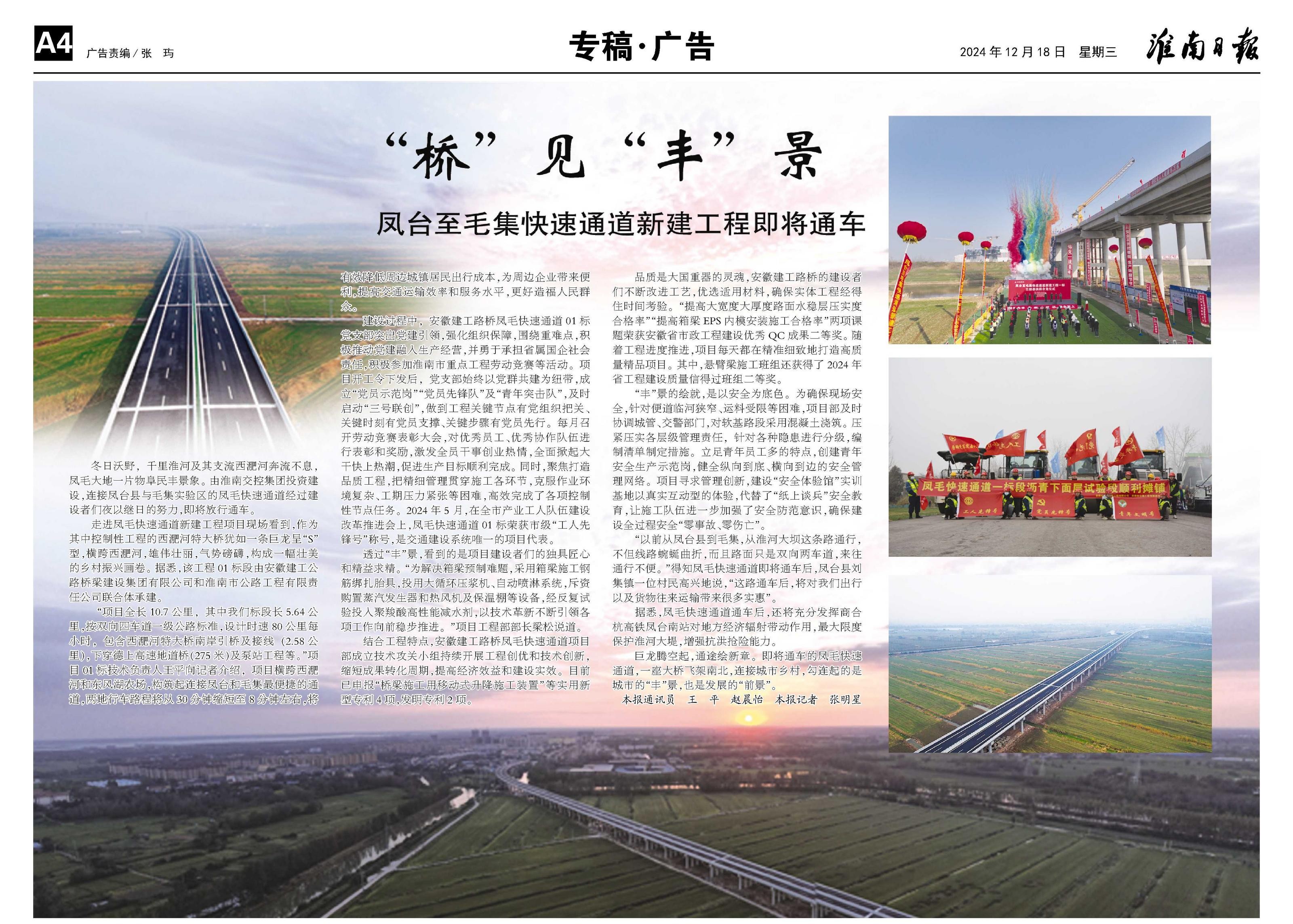 【名媒聚焦】淮南日报:“桥”见“丰”景——凤台至毛集快速通道新建工程即将通车