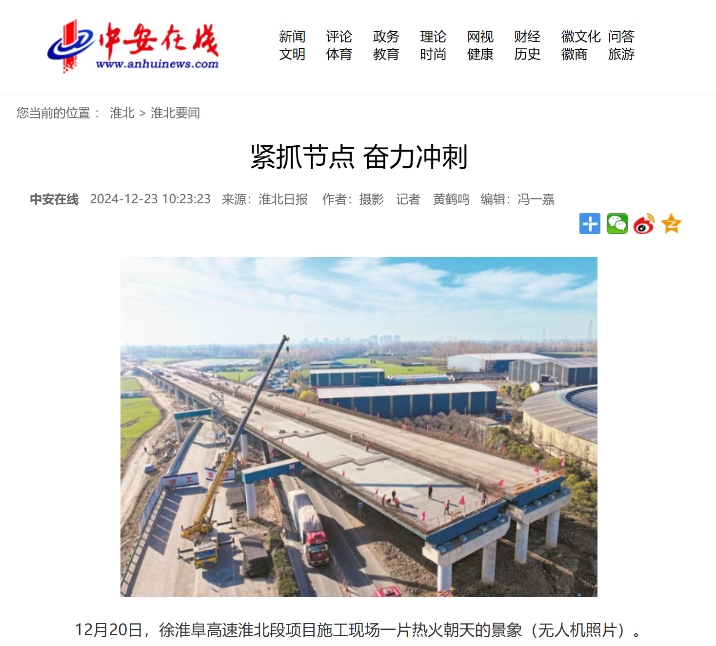 【名媒聚焦】中安在线、淮北日报:徐淮阜高速淮北段项目紧抓节点 奋力冲刺