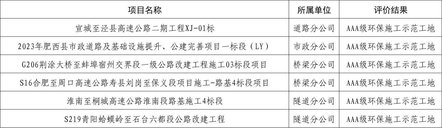 公司6个项目荣获安徽省“AAA级环保施工示范工地”称号