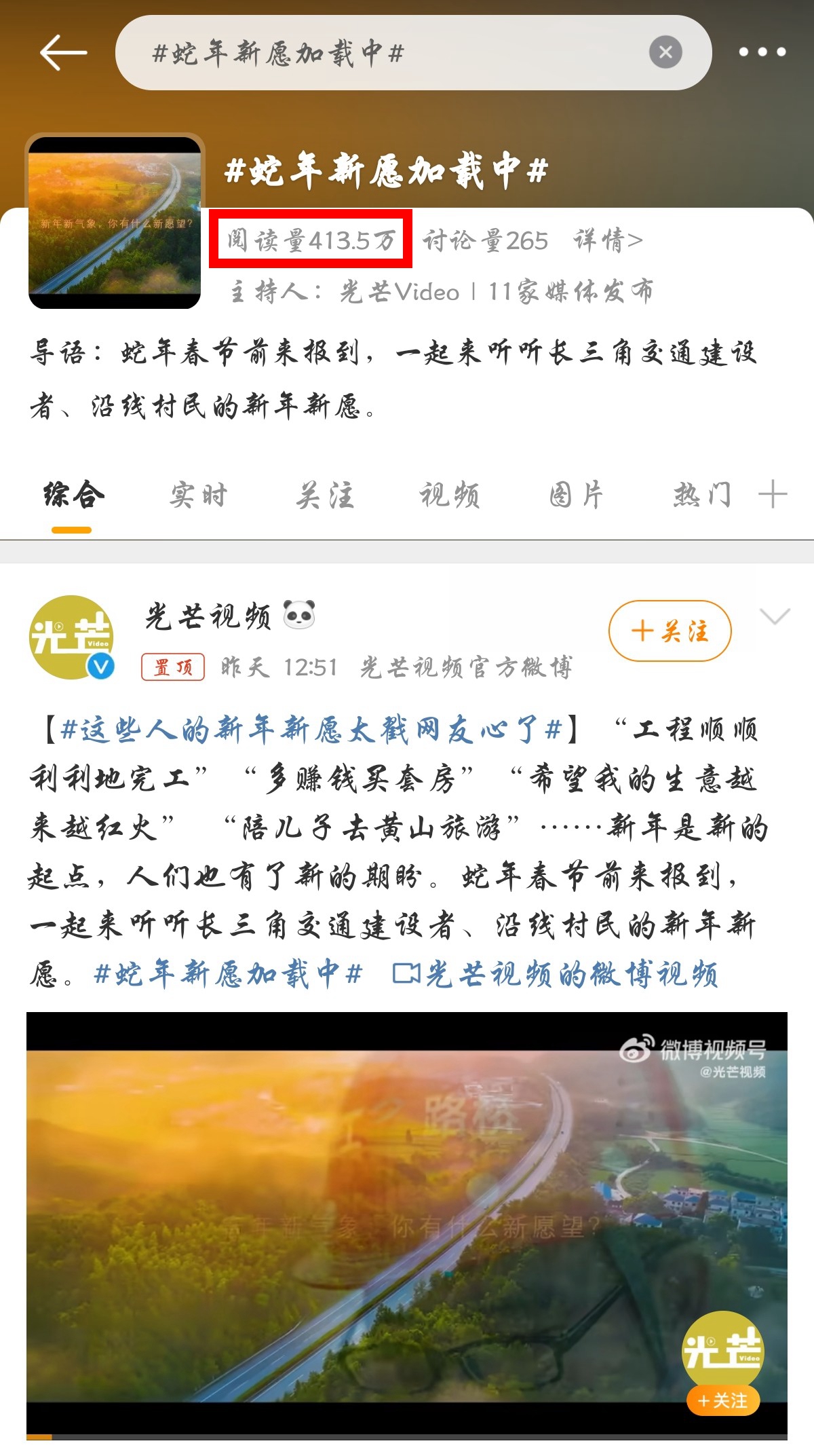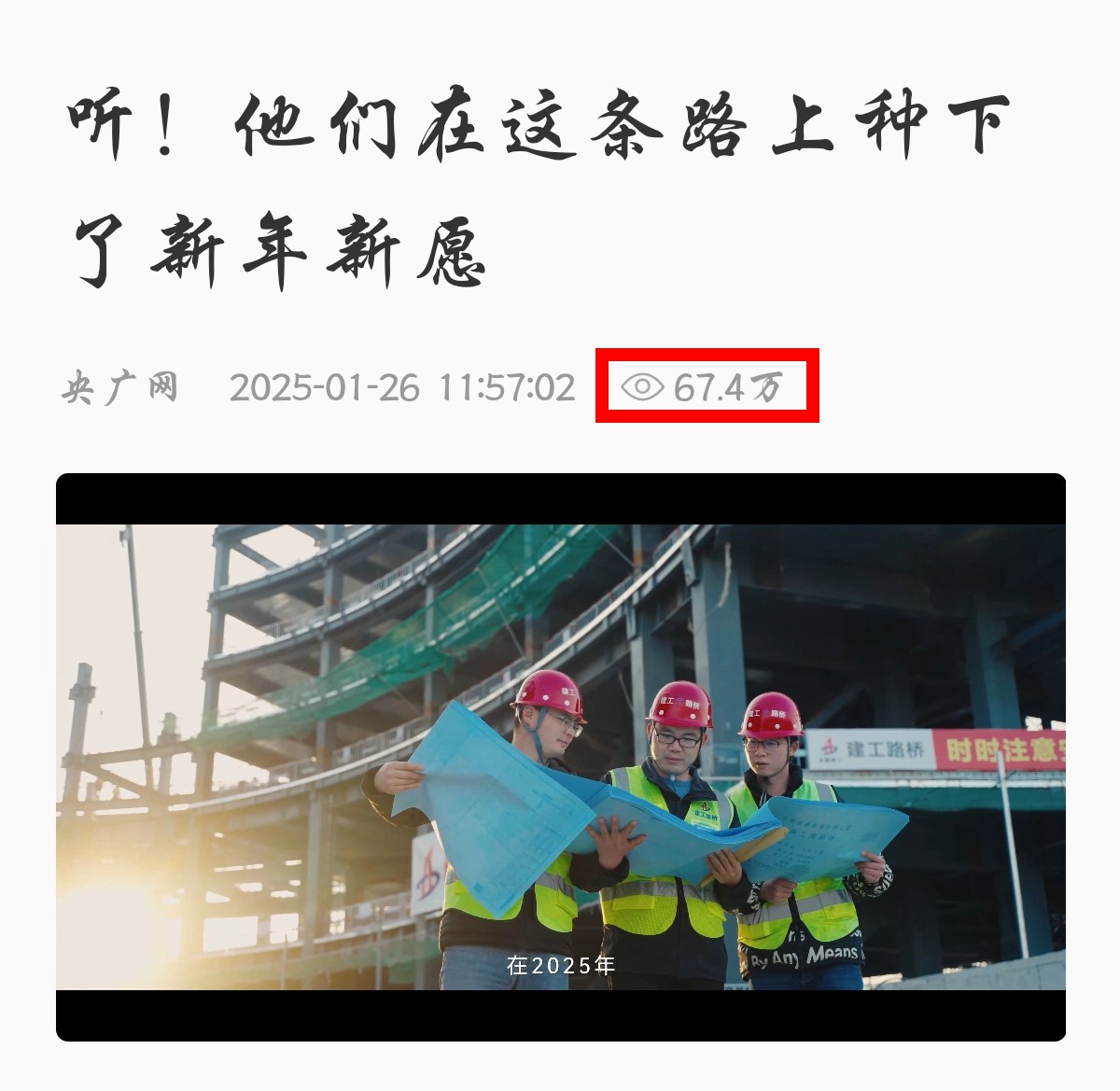 特别发布 | 我们的《新年新愿》已被数百万人看见! 发布时间:2025年01月27日 来源: 发布人:党委组织部(人力资源部、党委宣传部) 作者: 浏览:1449次 近日,由安徽建工路桥、央广网联合策划拍摄的新春微视频《新年新愿》在央广网发布,全网累计浏览量已达500万人次。让我们跟随他们的新年新愿,看一看一条条道路串起的好景好业好生活。央广网新浪微博