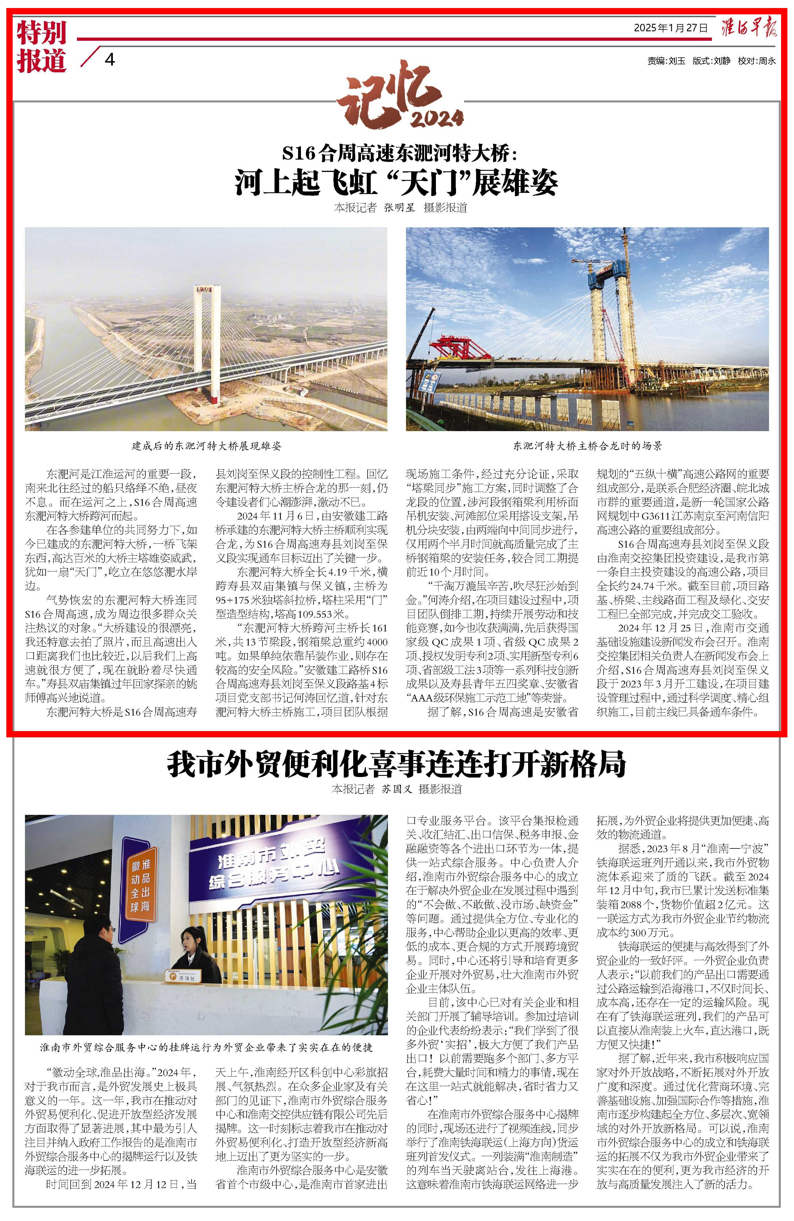 【名媒聚焦】淮河早报:S16合周高速东淝河特大桥:河上起飞虹 “天门”展雄姿
