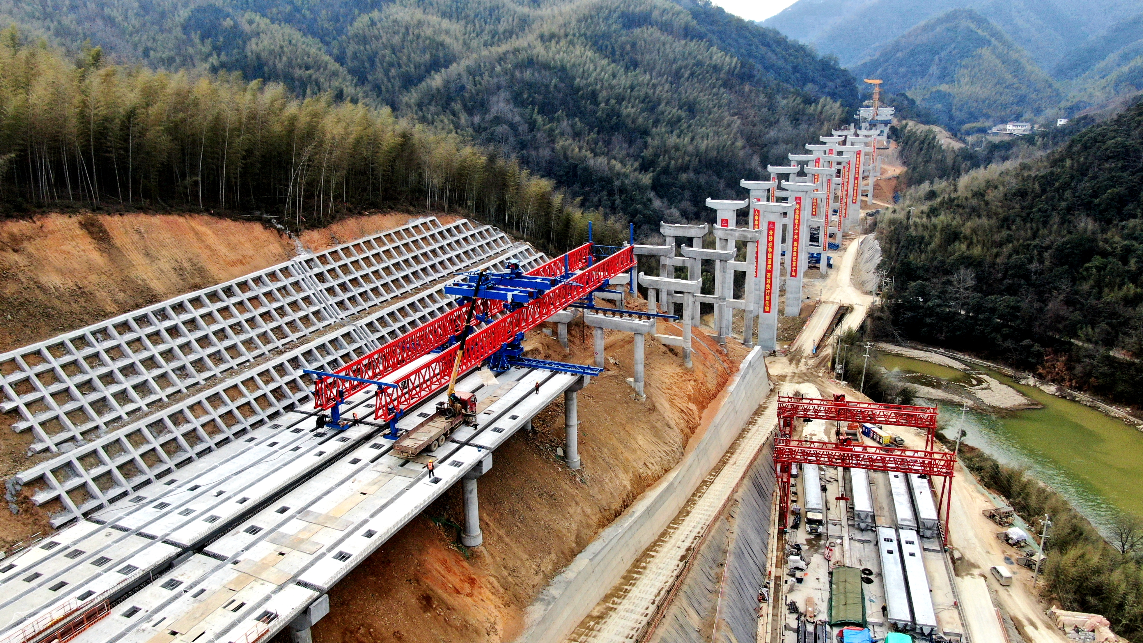 近80名施工人员投入紧张有序的梁板预制及架设、隧道开挖施工中,全力推进工程建设,冲刺蛇年“开门红”。