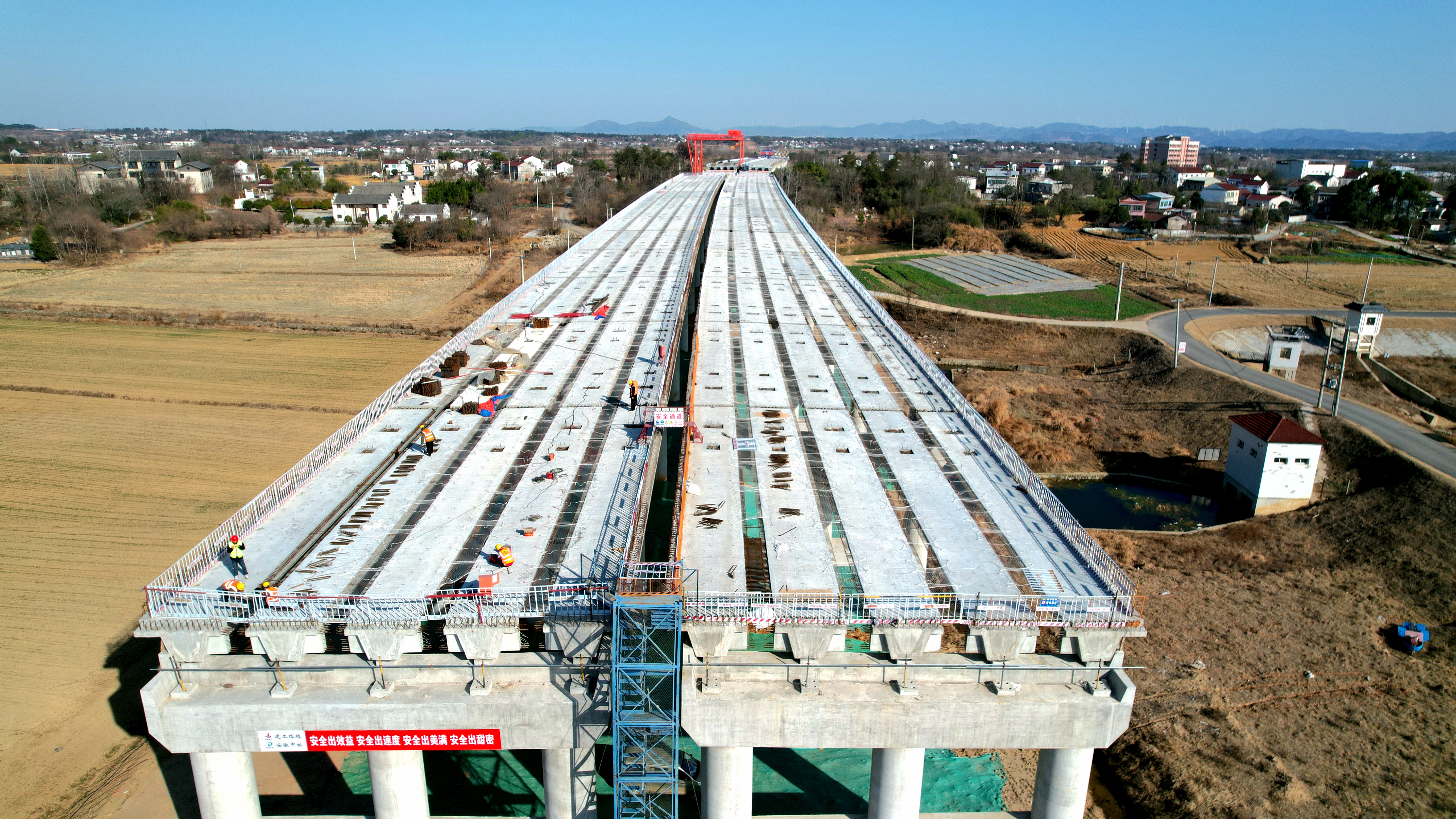 项目迅速启动水稳拌合站建设,并持续推进皖水河特大桥桥面施工,全面吹响项目2025年攻坚决胜号角。