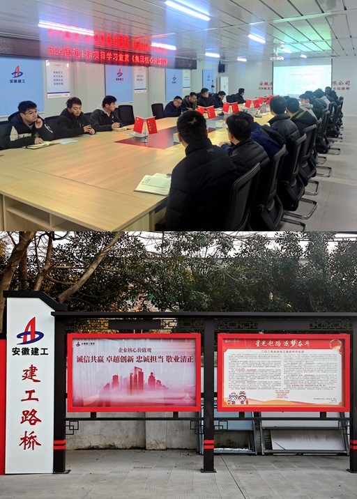 浙江524国道项目组织开展集团核心价值观专题学习会,并通过张贴标语、海报,制作展板横幅等形式,让全体员工深刻理解核心价值观理念。