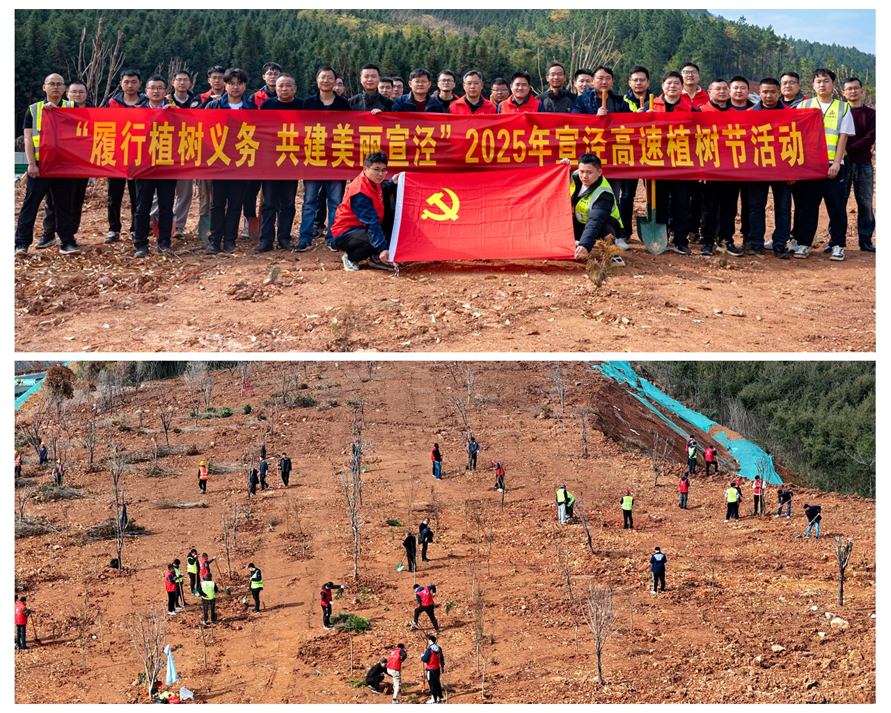 宣泾高速二期01标联合总监办、项目办,在土场需复绿地块开展“履行植树义务 共建美丽宣泾”植树节活动。让绿色成为宣泾大地的亮丽底色,实现工程建设与生态环保的良性互动,为打造美丽宣泾贡献力量。