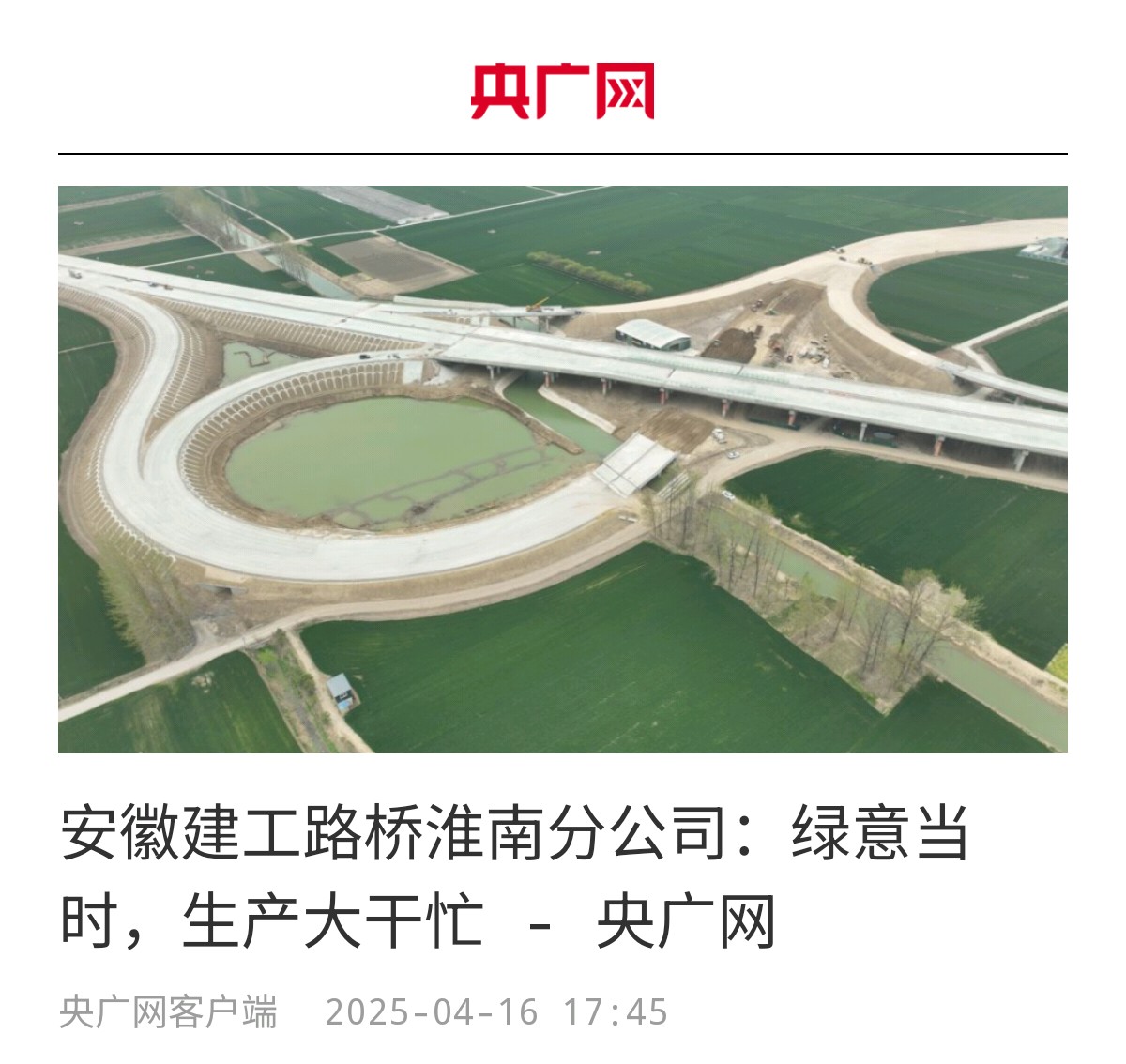 【名媒聚焦】央广网:安徽建工路桥淮南分公司——绿意当时,生产大干忙