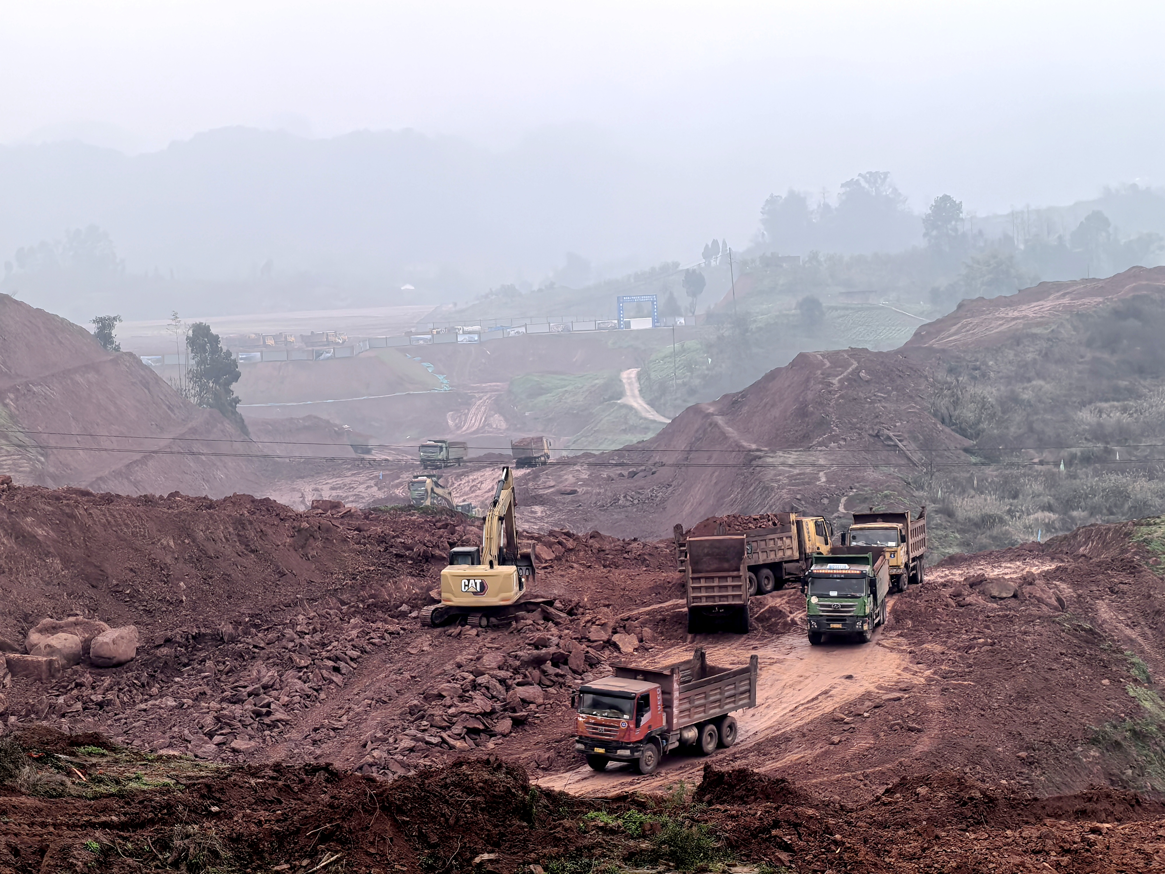 在川渝路二期项目,项目开启“进场即大干”模式,仅用20天就完成特殊路基施工任务,开启了路基大规模填筑工序。针对沿线水田区域采用“分层碾压+碎石垫层”工艺实现高效换填,有效解决了软弱地基承载难题。