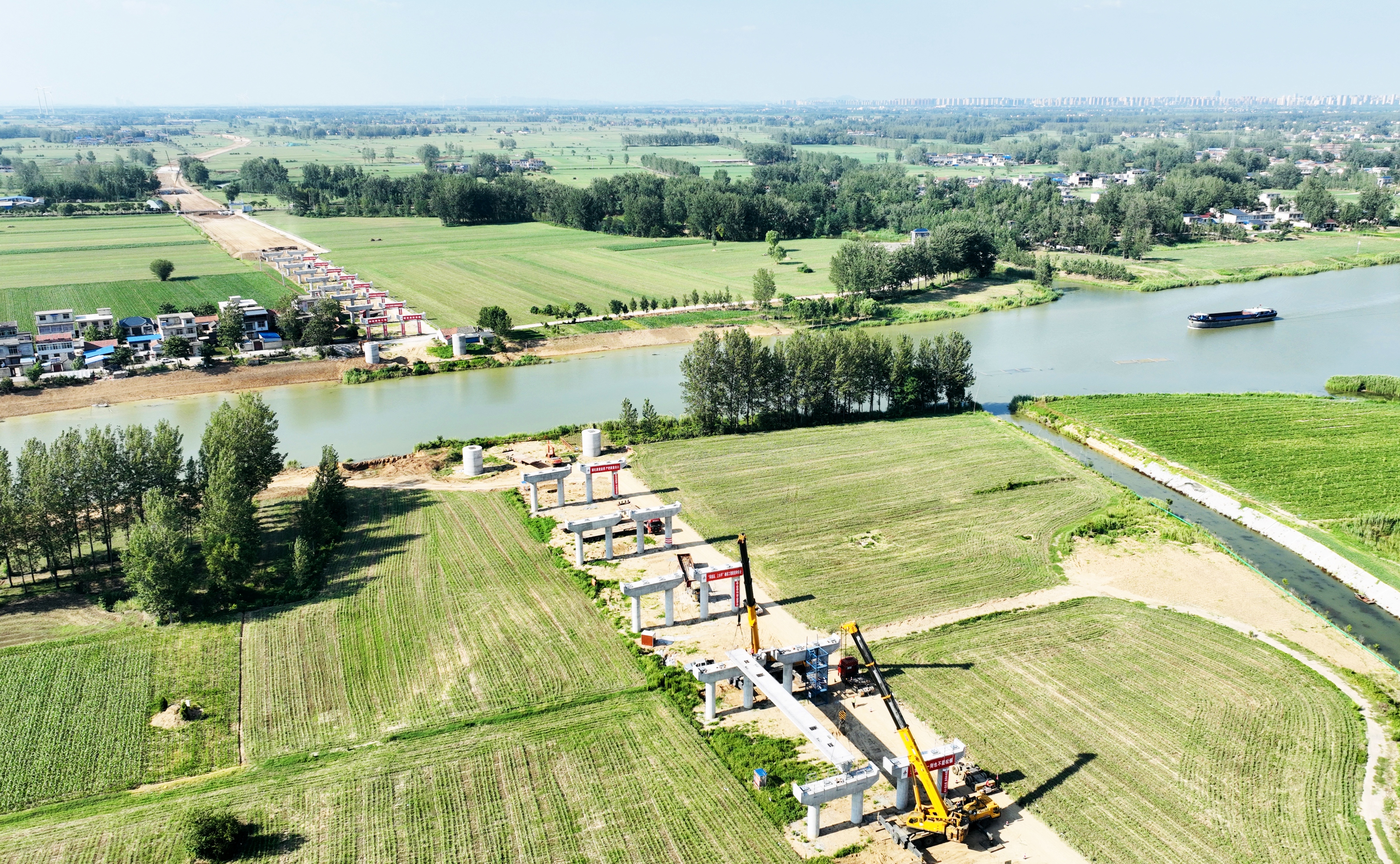 【路桥“竞”行时】S235濉唐路三期项目浍河大桥首片箱梁架设完成
