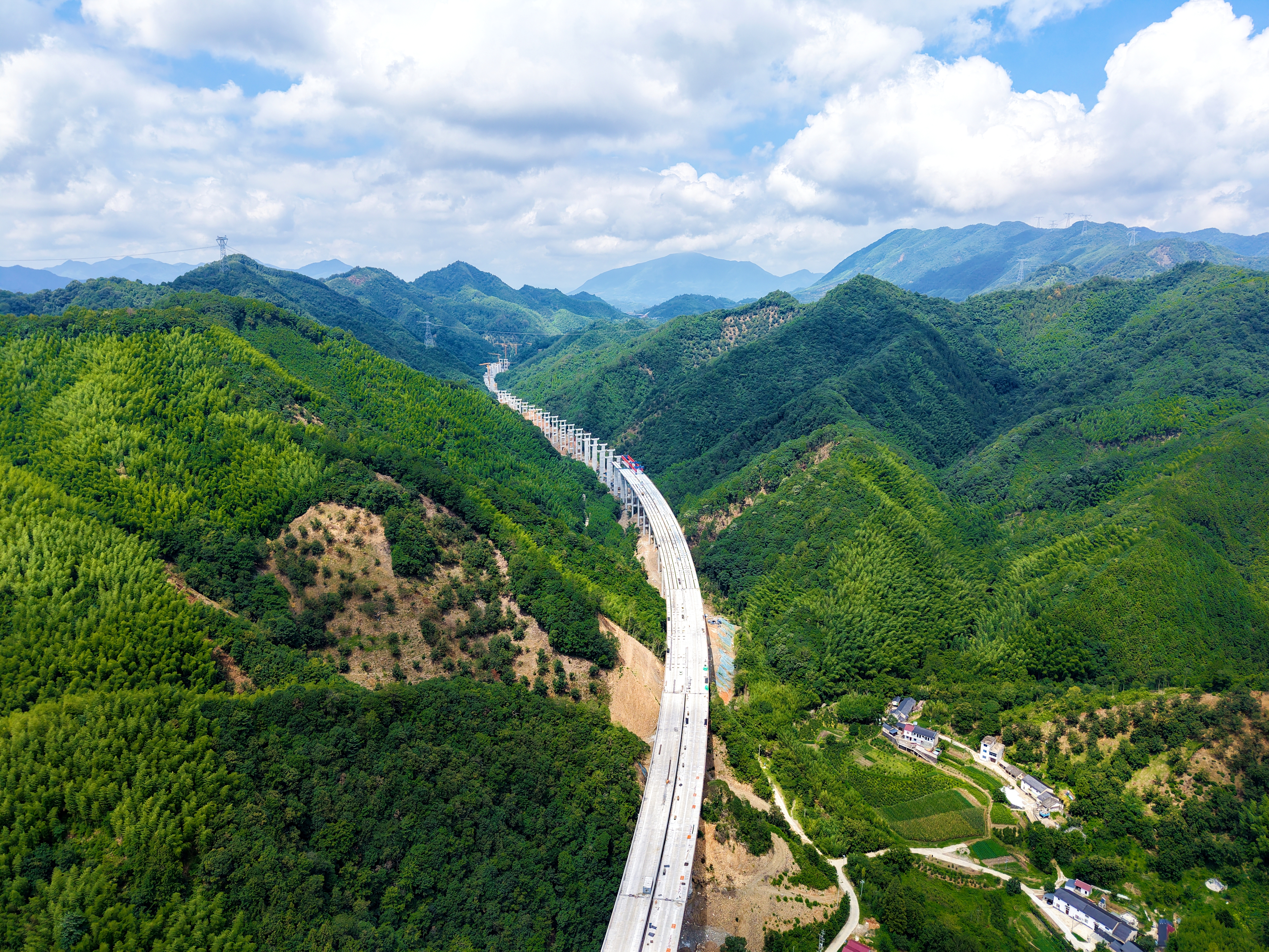 二季度以来,项目克服高空作业、枢纽导改、雨季汛期等挑战,统筹抓好进度、质量、安全等要素管控,提前完成全线桥梁下部结构施工、满堂支架现浇箱梁施工等节点,控制性工程新岭脚隧道实现全幅贯通。
