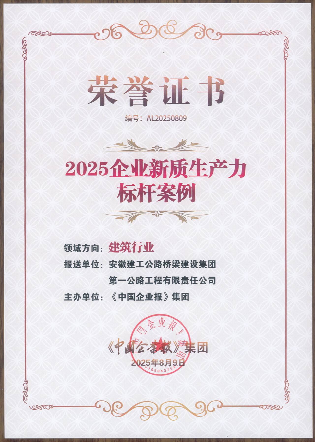 经过为期数月的深入调研、案例征集和严格评审,近日,“2025企业新质生产力标杆案例”正式发布,全国共有50家优秀企业案例入选,涵盖人工智能、新能源、低空经济及传统产业等领域。公司所属公路一公司《以新质生产力激活企业高质量发展新动能》案例,凭借在创新发展、绿色发展和可持续发展方面的突出成效成功入选。