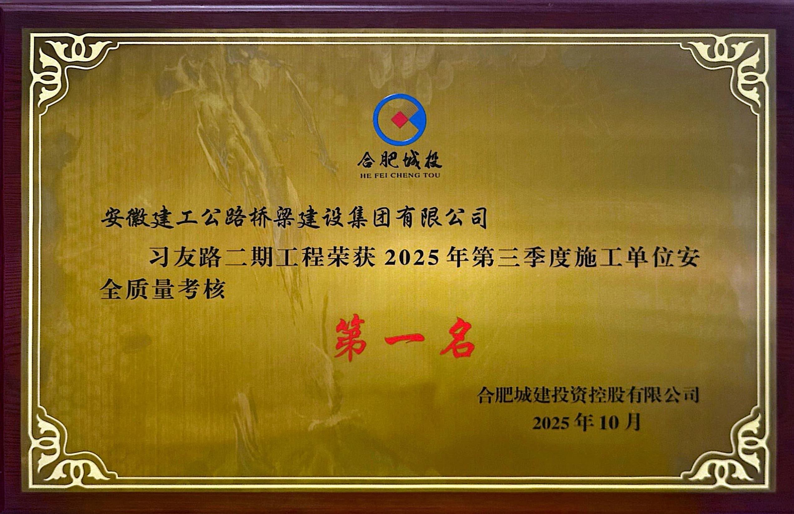 10月28日,在合肥城投组织的三季度安全生产表彰大会上,公司承建的习友路二期项目凭借卓越的综合管理成效,在考评中荣登榜首。