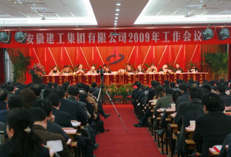 2月15日,建工集团召开2009年工作会,董事长、总经理胡运成作了《坚定信心,转为危机,确保安徽建工平稳较快发展》的报告,总结了2008年的工作,客观分析当前形势,研究部署了2009年工作任务。黄海嵩副省长亲临会场,并作了重要指示。省国资委桂建平主任、省交通厅王茂新处长应邀出席会议,并作了重要讲话。