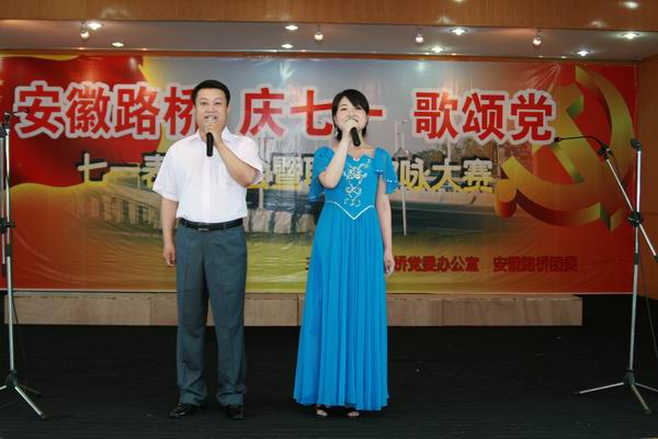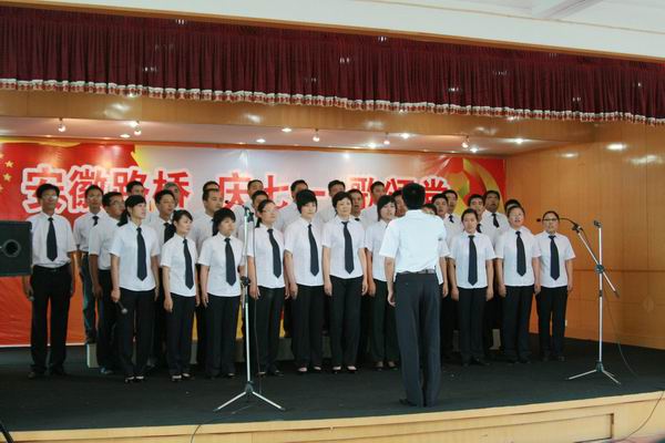 紧接着,庆七一,歌颂党职工歌咏大赛开始。比赛在路面公司激昂的《没有共产党就没有新中国》合唱声中拉开序幕,比赛场上,参赛队员精神饱满,着装整齐,怀着对中国共产党、对祖国的深厚感情,热情高歌《今天是你的生日我的中国》、《爱我中华》、《歌唱祖国》、《精忠报国》、《咱们工人有力量》、……发自肺腑的歌声深深感动了现场观众。