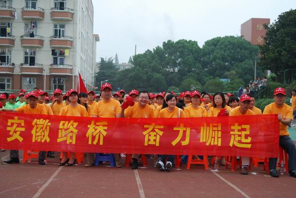 来自21个单位的近500员工组成了不同色彩的10个方队参加了开幕式。公司由总经理汪卫东、党委书记陈光磊带队,组成约100人的方队举着“安徽路桥 奋力崛起”的横幅,高喊“安徽路桥 抢抓机遇 实现跨越 科学发展 共促和谐”的口号,向集团领导和兄弟单位展示了公司积极向上的风采。
