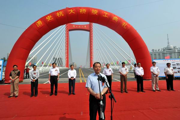 汪总在讲话中指出,作为省内桥梁施工的骨干企业,路桥公司与六安有着悠久的合作历史,与六安人民建立了深厚的感情。能够承建这座技术含量高、社会形象好的大桥,能够为六安人民献上这座优质精品桥、放心连心桥,路桥公司倍感光荣,我们愿意继续为六安社会经济快速协调发展做出更大的贡献。