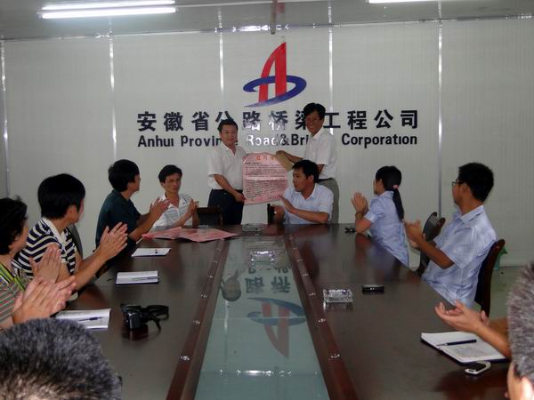 公司党办还为我项目送来了表彰先进基层党组织、先进党务工作者和先进党员的光荣榜,我宜巴09标项目党支部荣获安徽建工集团“先进基层党支部”称号和“党员先锋号工程”的称号,邵建新同志荣获安徽建工集团优秀党务工作者称号。