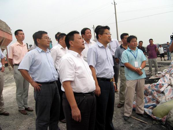 屠总一行首先视察了我部已经完成沥青砼施工的无量溪大桥,询问了大桥的施工情况。随后,屠总又视察了我部K206处完成小桥桥面铺装的施工现场。最后,屠总来到我部沥青拌和站场地视察,并指出了现场的一些不足,要求以最快的速度进行完善,强调指出在施工过程中始终严把质量关,把握好工程施工的重点。