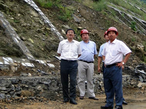 汪总一行来到施工现场,自标尾向标头,逐一视察了马家河2号桥绞缝连接施工、边坡排水施工、秦家河2号桥桥面铺装施工、路基平整及交验、边坡绿化施工、皂角树大桥护栏施工现场和标头挡墙及土方回填施工等情况。汪总对整洁有序的施工现场表示满意,对宜巴09标能够始终保持昂扬的斗志,及时克服前进中的困难,不断掀起施工高潮,顺利实现双幅贯通表示肯定和祝贺。