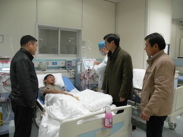 元月19日上午,中共十七大代表、全国劳模、安徽建工集团三建公司设备租赁公司副经理李朝进、集团工会副主席吴晓伍一行,在公司工会主席胡运春的陪同下,到医院看望慰问了公司患尿毒症的困难员工许寻,并送去了慰问金。