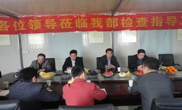 戴总一行在项目部听取了项目经理余跃关于安全文明创建工作的详细汇报。在会上,戴总就安全文明创建工作强调指出:要提高安全的地位,不要只停留在表面,要加大投入,要有技术保障,这样才能有安全效益;文明施工要合理布局,技术方面要可行,要落实细节方面的工作,做到合理规范。