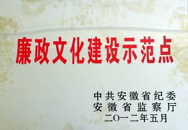 近日,公司被中共安徽省纪委、安徽省监察厅命名为全省第三批廉政文化建设示范点,成为全省获此荣誉的17家省属企业之一。