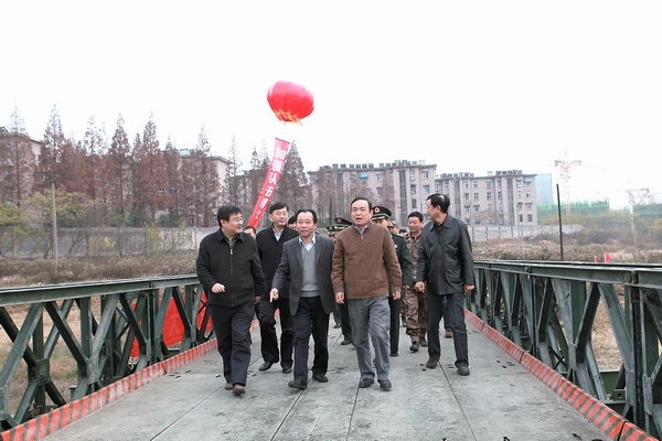 为贯彻交通战备工作“平时服务、急时应急、战时应战”总要求,根据省交通战备办公室2012年交通战备工作安排,11月30日由集团公司交战办组织安徽省公路工程保障大队在合肥警备区教导队训练场进行 “321“战备钢桥架设演示。公司承办了此次演示活动。此次演示也是全省交通战备工作会议的一项内容。南京军区交战办副主任、军区联勤部、军交运输部副部长王铁,省交战办主任、交通运输厅厅长梅劲,省交战办常务副主任、交通运输厅副厅长罗宁等领导出席了观摩活动。省国动委“八办”专职副主任,省交通运输厅机关各处室负责人,各市交战办负责人,省高速控股集团,交投集团和建工集团分管领导也参加了观摩指导。