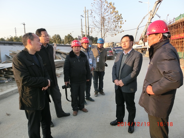 12月19日,芜湖市委常委、副市长曹哨兵一行莅临钱桥立交项目调研指导工作。市交通局局长刘敏、副调研员沈朝榴、市公路局局长丁继根等陪同。