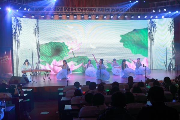 文艺汇演融声乐、器乐、舞蹈、相声、小品、朗诵、情景剧等多种艺术形式为一体,青春时尚元素与传统元素完美结合,多角度、多视点营造出昂扬向上、全员同乐的节日气氛。