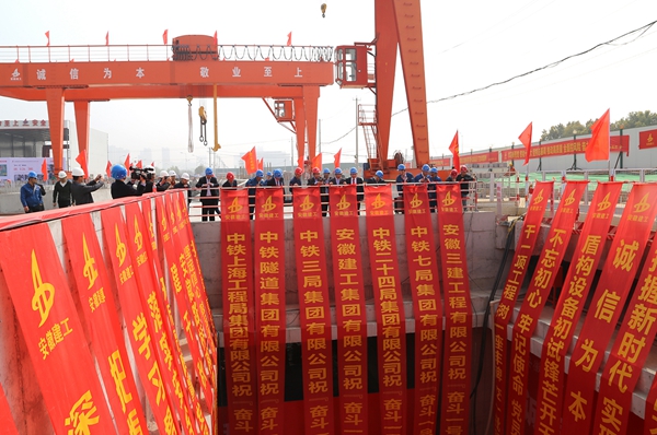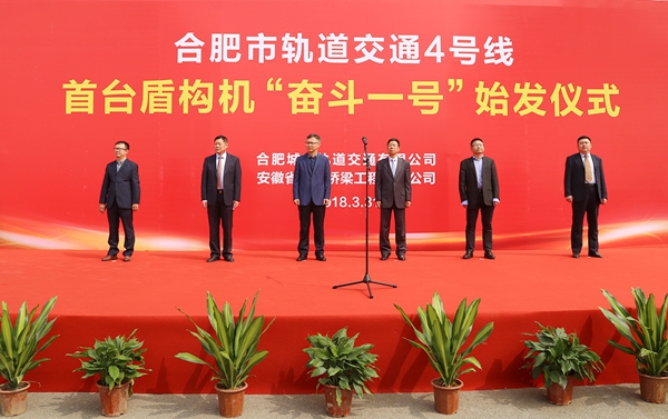 阳春三月生机勃发,奋斗一号掘进始发。3月31日上午,公司首台盾构机“奋斗一号”在轨道交通4号线1标长宁大道站顺利始发,标志着合肥轨道交通4号线正式进入盾构施工阶段。合肥市轨道公司总经理罗斌,安徽建工集团副总经理王厚良,公司董事长、党委书记、总经理孙学军等领导和参建单位代表出席始发仪式。10时16分,罗斌宣布“奋斗一号”正式始发。仪式结束后,与会领导与专家深入始发现场、管片存放区检查指导。