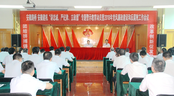 6月13日,公司在七楼会议室召开“讲忠诚、严纪律、立政德”专题警示教育动员暨2018年度党风廉政建设和反腐败工作会议。公司领导班子成员、中层干部和安徽建机中层以上干部参加会议,公司党委书记、董事长、总经理孙学军出席会议并作动员讲话,会议由公司党委委员、纪委书记林绪坤主持,