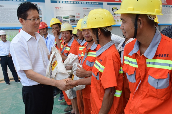 8月3日,淮北市委常委、纪委书记宰学明在市纪委监察委和市总工会相关负责人的陪同下,深入淮北市S101及S254改建工程PPP项目施工现场,看望慰问公司一线参建人员。