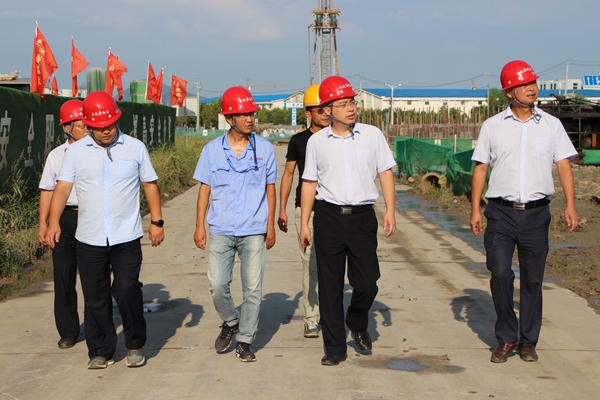 8月15日下午,公司党委副书记、总经理钱申春到巢湖亚父路项目调研指导工作,市政分公司经理王明礼陪同。