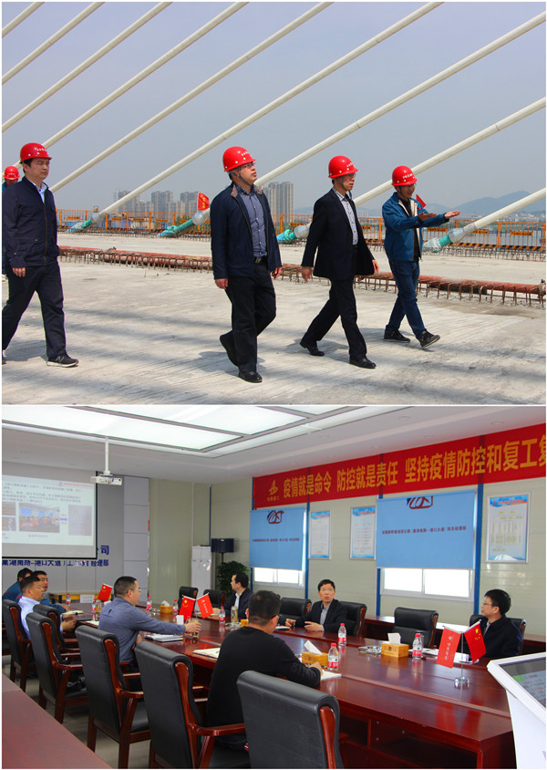 王厚良深入施工现场,实地调研项目建设情况,查看了项目主桥承台、塔柱、斜拉索、主梁等建设情况,详细询问了主桥合龙计划。在项目部会议室,王厚良认真听取了项目负责人关于工程建设管理的工作汇报,对工程进度、安全质量和科技创新管理及党建工作开展等情况进行了全面了解。王厚良对项目建设情况表示肯定。他强调,要继续强化安全管理,做好工程收尾工作,加强管理经验和技术创新总结,为创优夺杯打好基础。要结合工程施工管理和技术亮点,加强宣传,展示企业形象、实力,扩大市场影响力。要继续提高经营能力水平,在长江大桥市场、轨道交通市场进一步拓展,实现项目落地。