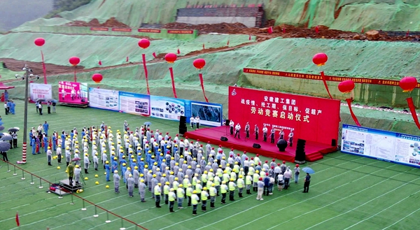 6月3日上午,安徽建工集团“战疫情、抢工期、保目标、促超产”劳动竞赛启动仪式在公司承建的芜黄07标项目顺利举行。省交通运输厅总工程师章后忠,省交控集团副总经理王宏祥,省交控建设管理有限公司副总经理马祖桥,股份公司党委副书记、总经理许克顺,党委副书记、副总经理孙学军等出席仪式。公司党委副书记、总经理钱申春代表施工单位进行了宣誓。