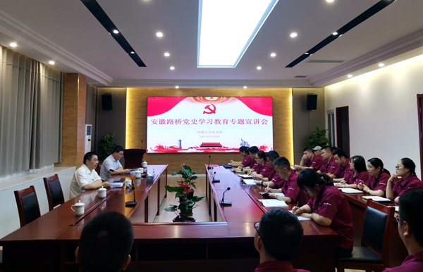 会上, 钱申春通报了公司党史学习教育开展情况,并围绕“学习党的百年历史,传承发扬奋斗精神”“深刻认识公司改革发展历程及近年来取得的主要成绩,切实增强品质路桥卓越路桥建设的信心决心”“扎实推进党史学习教育,为公司“十四五”发展凝聚强大力量”三个方面作了宣讲。