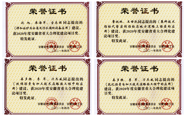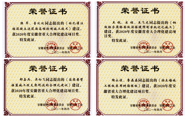 近日,安徽省劳动竞赛委员会、安徽省总工会联合评选的“2020年度安徽省重大合理化建议项目奖”揭晓,公司《涉路桥梁多种型号预制梁板桥优化为钢板组合梁桥合理化建议》等10项成果入选。