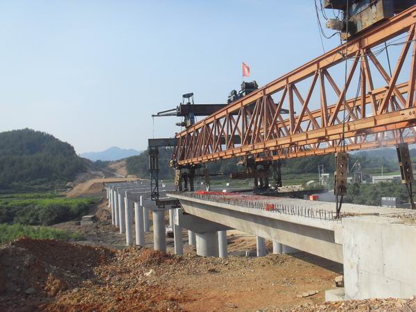 5月28日下午4时,在阵阵喜庆的鞭炮声中,随着箱梁的稳稳落下,绩黄高速02标K12+976.5大桥第一片箱梁成功安装。此次安装的箱梁长25米、宽2.85米、重72吨,是第十跨右幅边梁。据悉,这是绩黄高速公路全线安装的第一片箱梁。