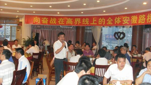 晚上,项目部安排庆功晚宴,公司总经理汪卫东携路面公司领导班子成员,特地来到工地与大家欢聚一堂。