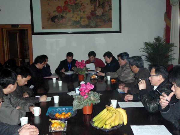在项目部会议室,项目经理冷峰对近期的准备情况做了汇报。我部自2009年12月19号进场以来,在总公司的指导与支持下,合理组织,积极协调,已完成项目部建设,规章制度、图表已上墙,宽带、电话已开通。施工组织设计、清单复核、图纸审查等技术准备工作已完成。料源调查已结束,实验室建设已完成,正在进行临时资质的申报。预制场地建设已完成,混凝土拌和站已进场,正在进行安装调试。