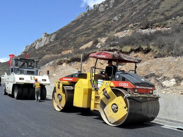 四川漳黄02标在整个标段率先摊铺沥青试验段