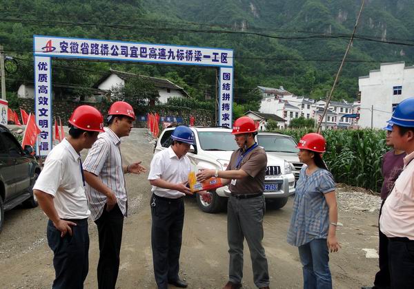 宋指挥长一行在项目经理王远胜陪同下来到桥梁一工区施工现场,慰问坚守在施工一线的广大人员,并带来慰问品。宋指挥长要求:夏季高温来临,施工一定要做好防暑降温工作,搞好后勤服务保障,同时做到安全施工、文明施工,和谐施工。