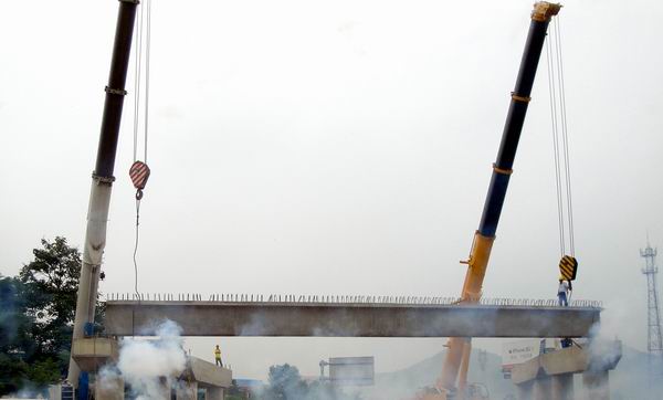 此次梁板架设方案经我部反复讨论,还专门举行了梁板架设安全技术交底会,并上报了专项技术和安全方案。现场吊装作业的队伍也是我部特别选用的一支有多年梁板架设经验的专业队伍。在抓生产进度的同时,确保安全防范及时跟上。