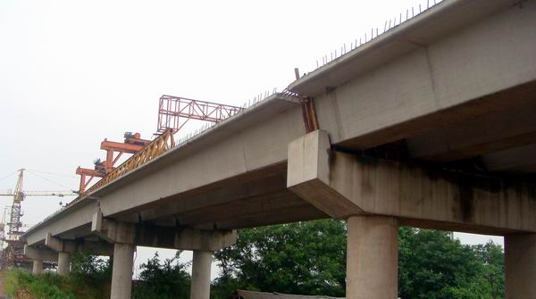 江南的7月是个多雨的季节,自进入7月以来,青弋江项目遇上连日暴雨,长江水位猛涨,青弋江水位也随长江水位增高和上游陈村水库泄洪而增高,一度超过了98年同期水位,致使对岸红星圩大堤被县防指封堵,东岸施工平台被淹,被迫停工半月之余。再加上受洪水、停电、停水等不利因素的影响,项目生产出现困难,但项目部及时调整施工方案和对策,不等不靠,采取灵活方案,积极进行施工生产:主桥不能干就干引桥,白天不能干就晚上干,停电就自己发电,没有水就挑水或买水……努力克服重重困难,保工期、保质量。到月底即7月31日止,共完成32片30M箱梁的安装,主桥已完成5#墩的7#块、6#墩的5#块的浇筑任务,预计8月底能完成主桥全跨的合拢任务。9月份全桥将进入上部桥面系的施工,全桥预计在10月底全部完工。