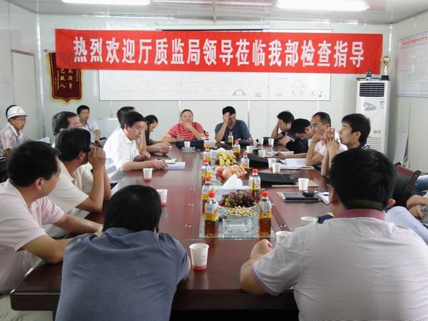 刘军首先主持召开质量安全检查布置会议,简要的介绍本次质量安全检查的内容和分工。项目经理王远胜向检查组一行就我部施工进度、质量、安全、环保、内业管理和目前施工存在的困难进行专门汇报。